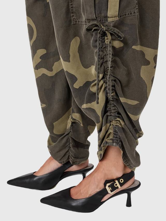 Мастер-класс по пропорциям: выберите эти зауженные брюки-карго от AllSaints. Они имеют среднюю посадку, эластичный пояс, камуфляжный принт по всей поверхности и стандартную длину.