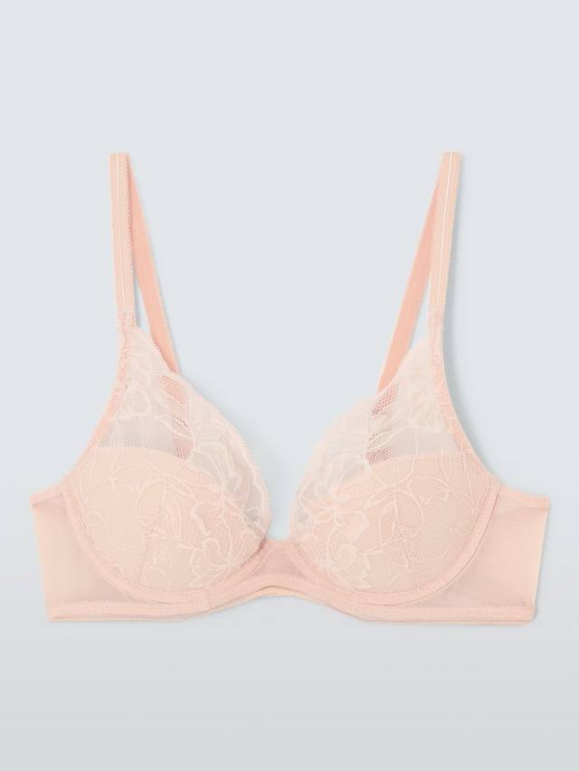Этот бюстгальтер с высокой чашкой на подкладке обеспечивает поддержку и приподнимает верхнюю часть груди. Легкий на ощупь, он облегает кожу, украшен изысканной цветочной вышивкой и фестончатым краем.