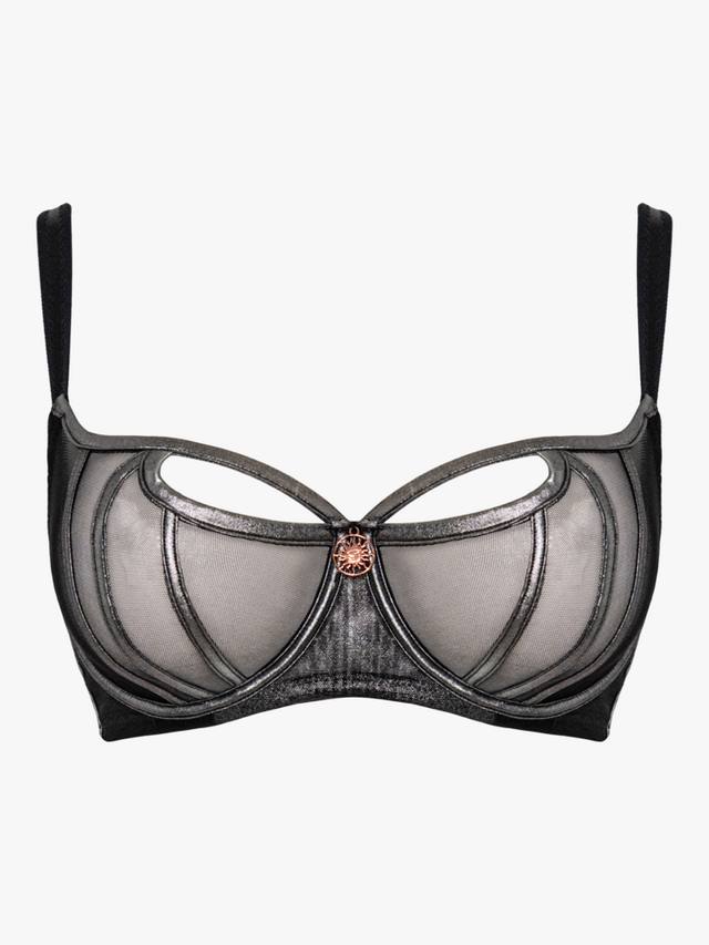 Линейка бюстгальтеров Eos с фольгированным принтом прекрасно сочетает в себе смелость и элегантность. Вертикальные швы чашечек обеспечивают приподнятый силуэт, а округлые формы обеспечивают идеальную поддержку. Изящные вырезы на груди добавляют соблазнительный штрих, дополняемый регулируемыми бретельками для идеальной посадки. Металлическая подвеска в виде солнца цвета розового золота завершает образ.
