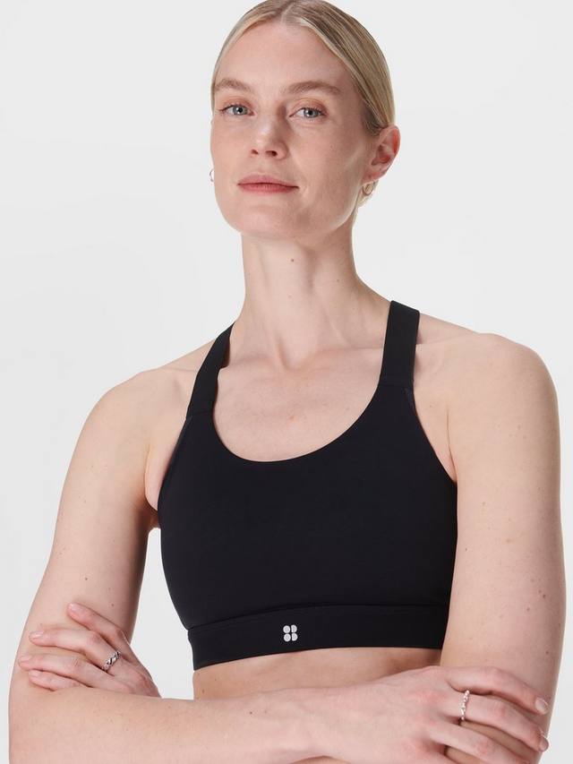 Спортивный бюстгальтер с удаленными швами на груди для более чистого и современного внешнего вида. Эластичный, влагоотводящий и быстросохнущий. Овальный вырез и спинка с регулируемой Т-образной бретелькой. Конструкция средней жесткости обеспечивает комфорт и поддержку благодаря съемным подушечкам.