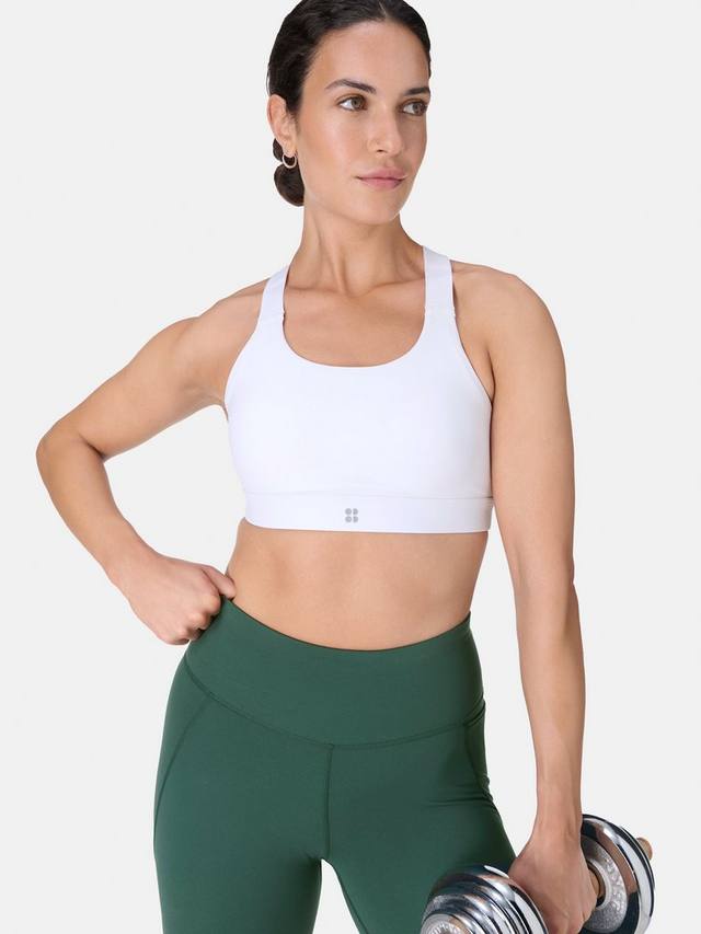 Спортивный бюстгальтер с удаленными швами на груди для более чистого и современного внешнего вида. Эластичный, влагоотводящий и быстросохнущий. Овальный вырез и спинка с регулируемой Т-образной бретелькой. Конструкция средней жесткости обеспечивает комфорт и поддержку благодаря съемным подушечкам.