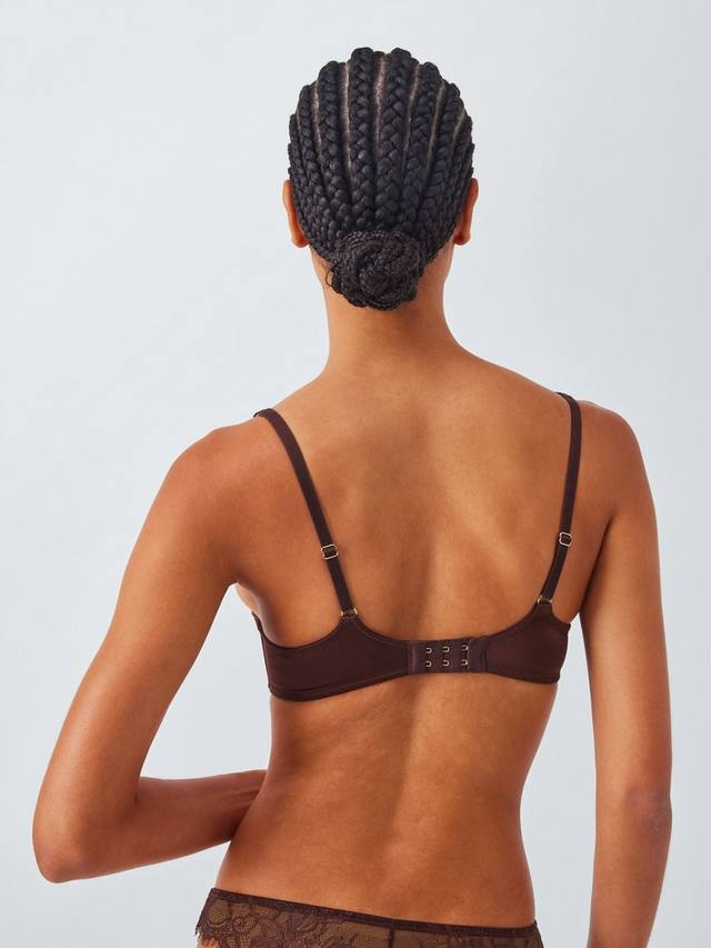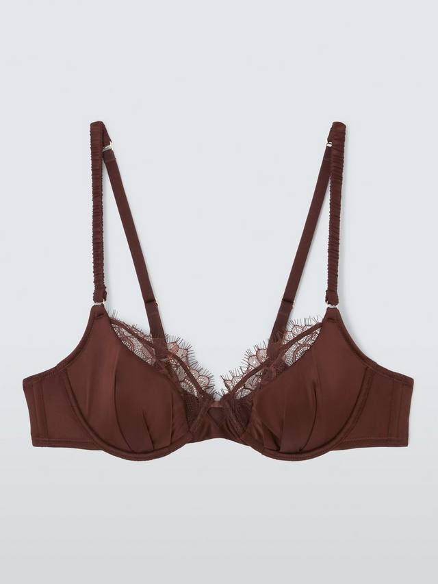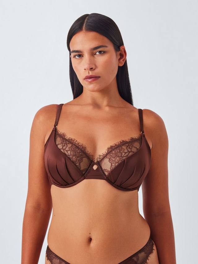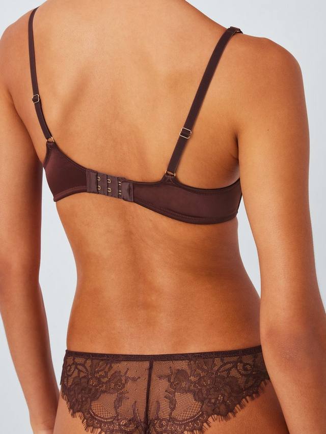 Бюстгальтер балконет с подушечками, плиссированными чашками и кружевной отделкой. На косточках для поддержки и с небольшим вырезом по центру спереди.