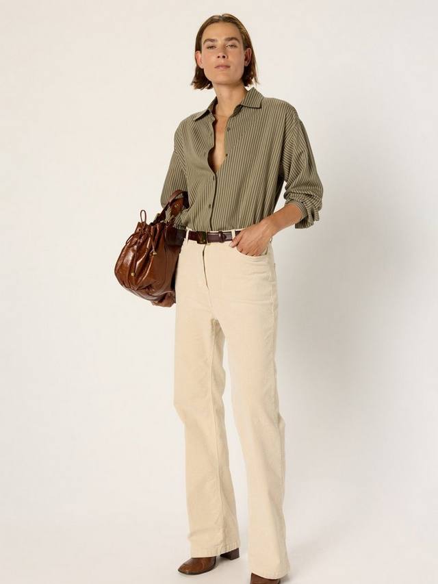 Эти расклешенные брюки из мягкой хлопковой ткани обеспечивают продуманный комфорт и игривый стиль. Средняя посадка придаст вам уверенности, а застежка-молния обеспечит удобство и доступность в напряженные дни.