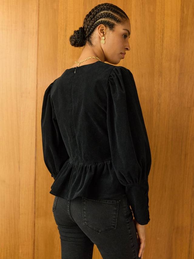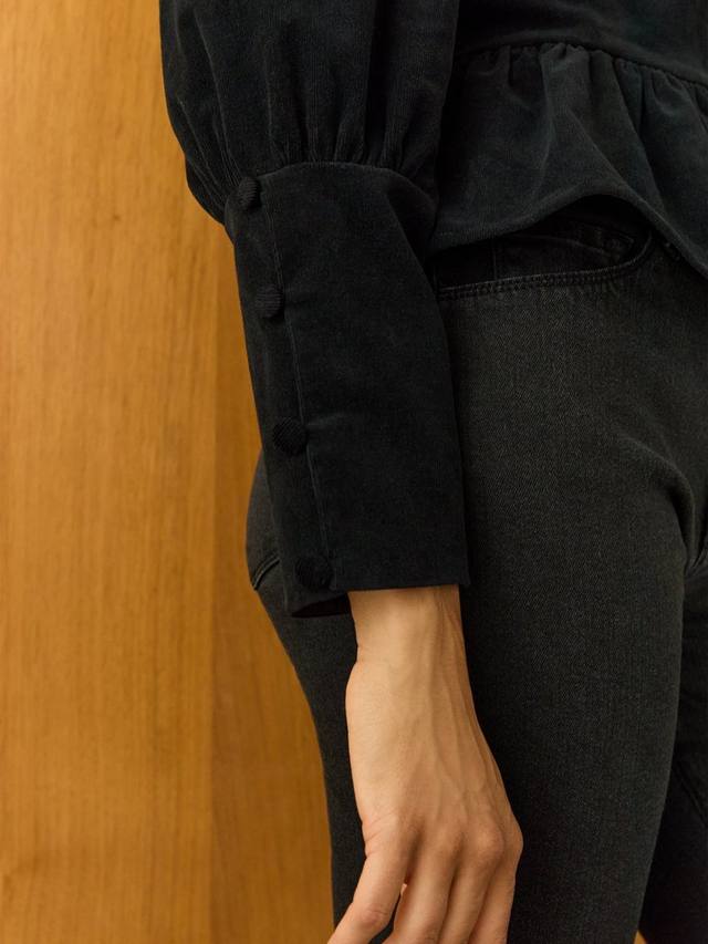 Добавьте нотку непринужденного гламура вашим любимым джинсам с помощью топа Adela Peplum. Эта нарядная модель выполнена из тонкого хлопкового вельвета, что придает ей роскошный вид. В дизайне гармонично сочетаются пропорции: приталенный крой дополнен пышной оборкой в стиле пеплум, а пышные плечи переходят в тонкие, глубокие манжеты, застегивающиеся на пуговицы-петли. Дополните образ серьгами-кольцами и лёгкой помадой для создания непринуждённого образа на выход.