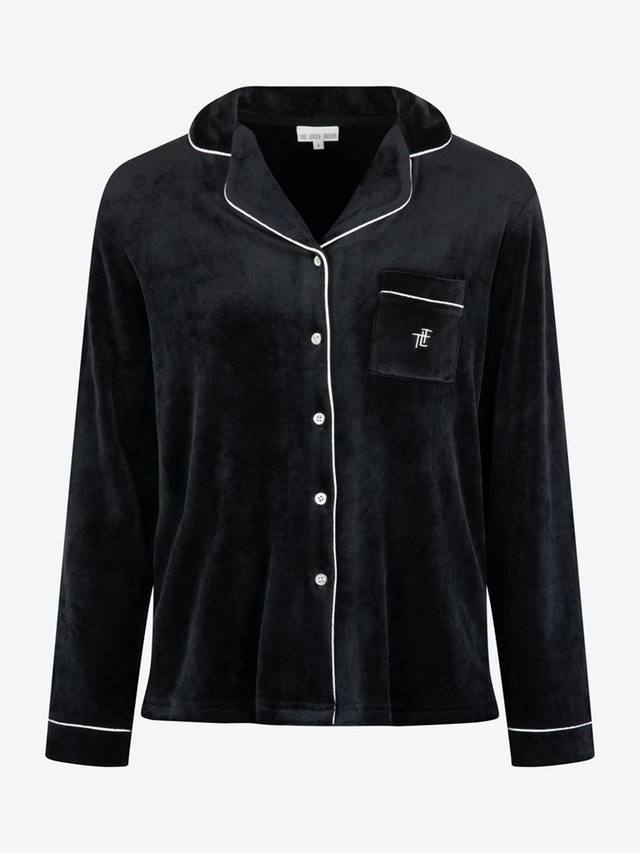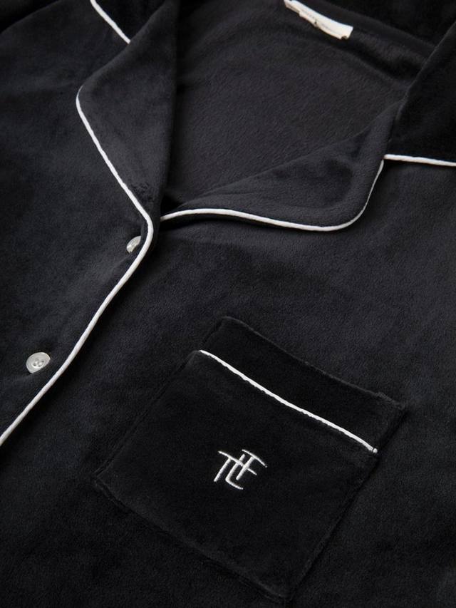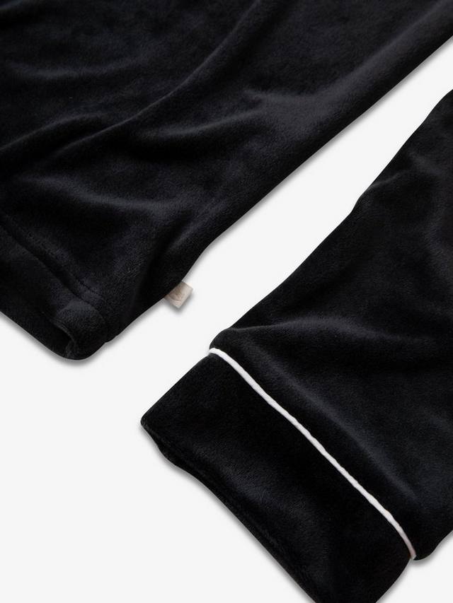 Эта мягкая велюровая пижама, сочетающая в себе роскошь и комфорт, станет идеальным дополнением к вашей коллекции домашней одежды в этом сезоне. Контрастная окантовка, застежка на пуговицы спереди и мягкая начеса на изнанке обеспечат вам стильный отдых.
