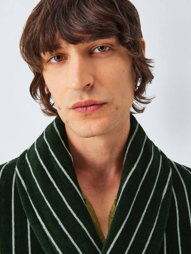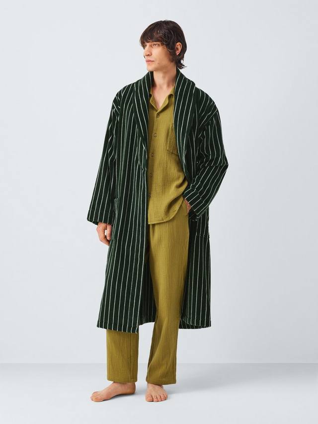 Наш халат из роскошного велюра с вместительными передними карманами, завязывающимся поясом и вертикальной полоской. Что лучше надеть утром или перед сном?