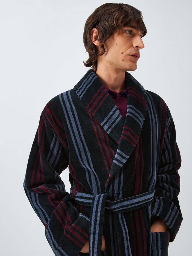 Наш халат из роскошного велюра с вместительными передними карманами и завязывающимся поясом дополнен узором в разноцветную полоску. Что лучше надеть утром или перед сном?