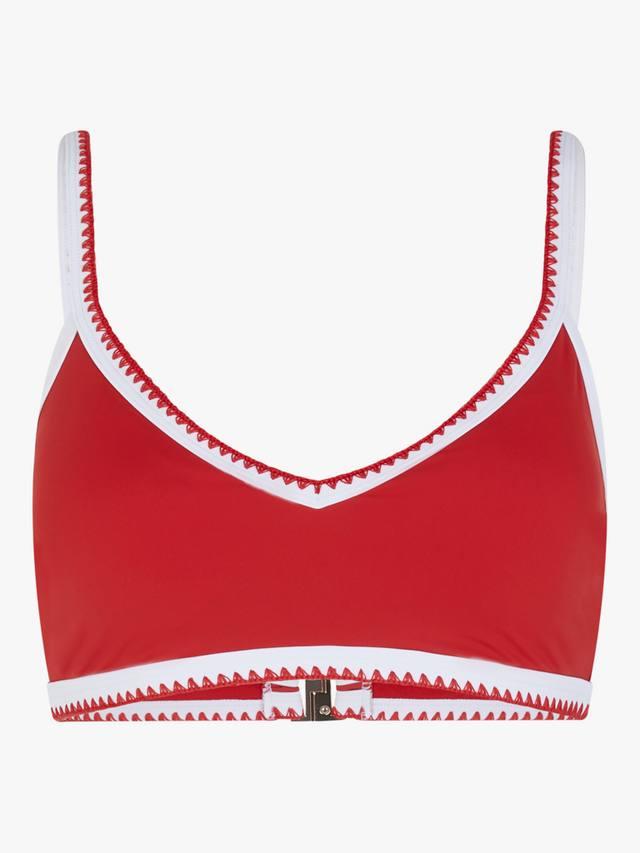 Этот бикини-топ яркого цвета с отделкой крючком гарантированно будет привлекать внимание у бассейна. Застёгивается на застёжку сзади.