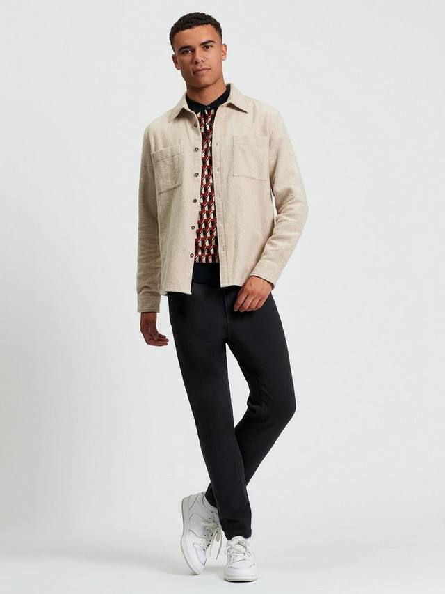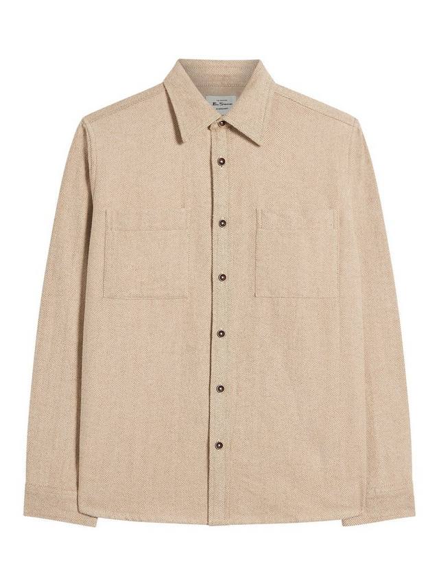 Эта начесаная рубашка с узором елочка имеет острый воротник, два практичных нагрудных кармана и тканую этикетку на боковом шве.