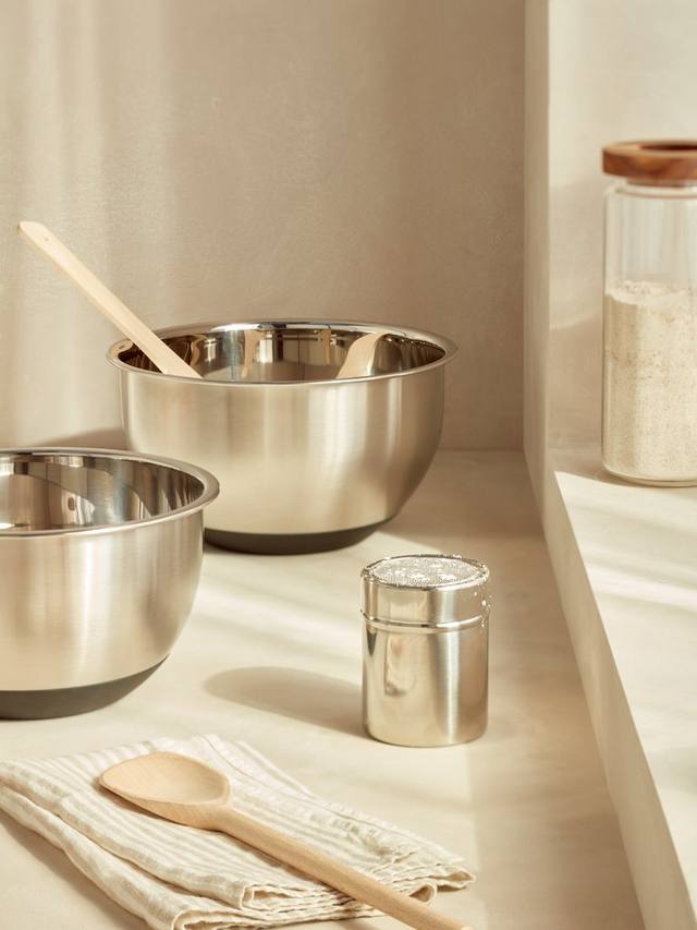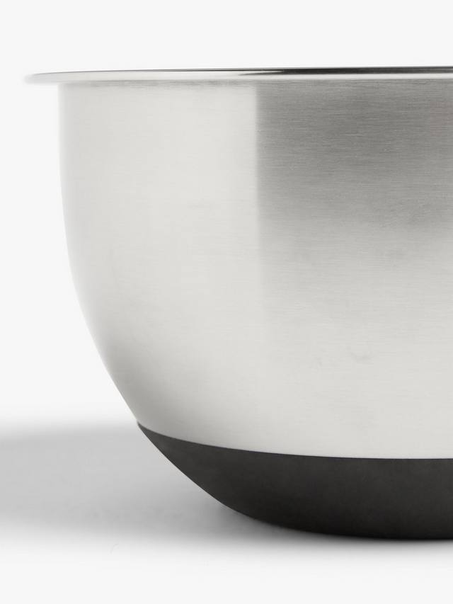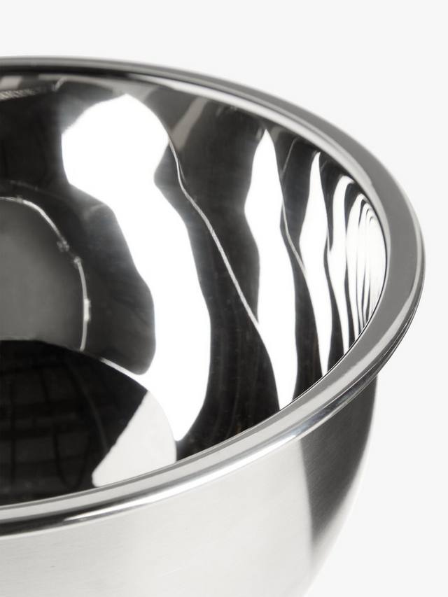 Эта миска среднего размера изготовлена из прочной нержавеющей стали и имеет нескользящее основание, что облегчает смешивание. Для компактного хранения она складывается с мисками большего размера, продающимися отдельно.