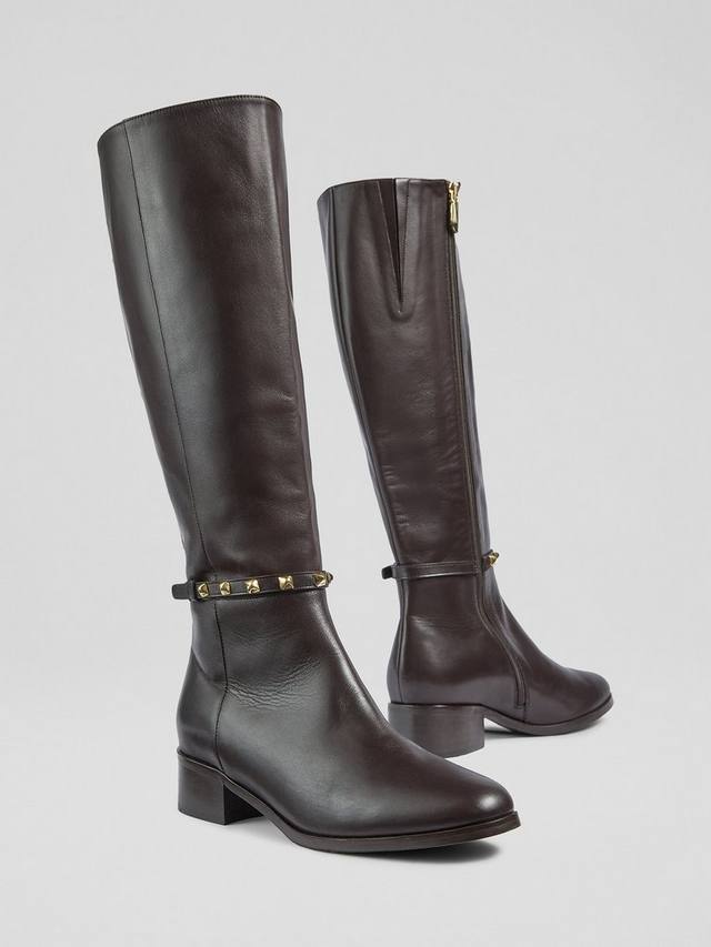 Представляем Stevie — стильное дополнение к вашему повседневному гардеробу. Эти плоские сапоги до колена, изготовленные в Италии из высококачественной телячьей кожи, сочетают в себе элегантный дизайн и сдержанный стиль благодаря изысканной отделке заклёпками.