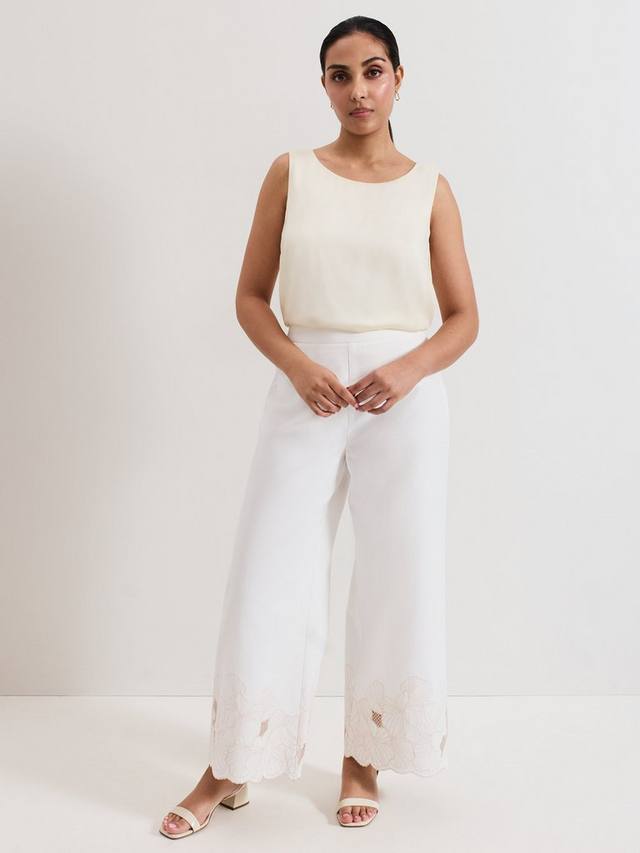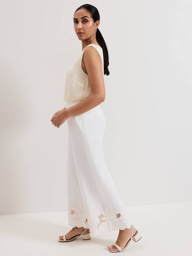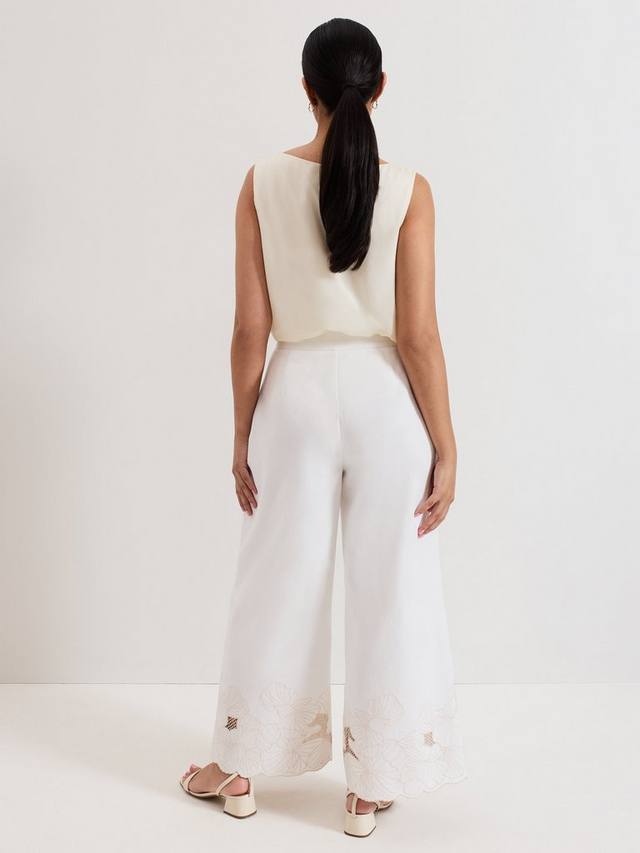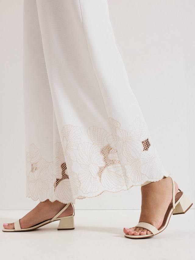 Эти брюки, изготовленные из 100% хлопка, обеспечивают лёгкость и станут неотъемлемой частью вашего гардероба. Широкий силуэт, дополненный изысканной вышивкой по подолу, создаёт современный стильный образ, подходящий как для дневного, так и для вечернего ношения.