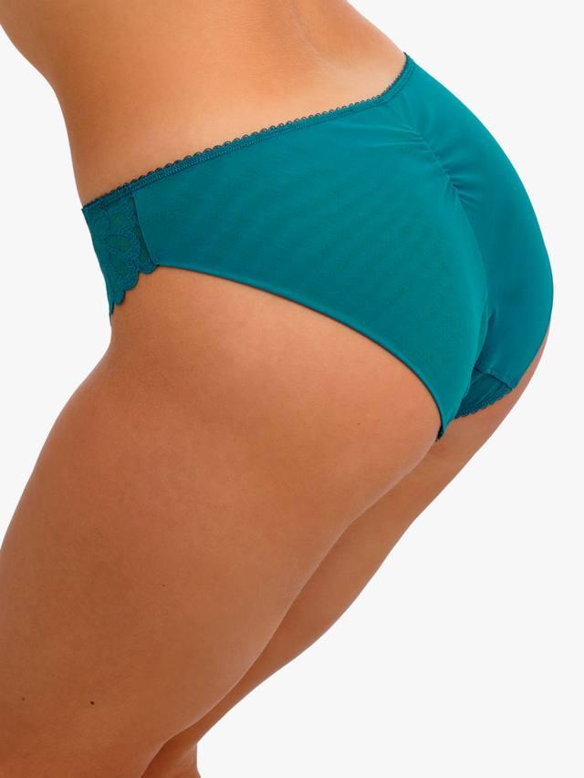 Трусики Loveland украшены эффектной вышивкой в стиле ар-деко. Двухслойная сетчатая спинка с подвернутым краем брючины обеспечивает гладкую поверхность, минимизируя видимость линии трусиков. Присборка по заднему шву для придания формы. Деталь в виде замочной скважины, подвеска с драгоценным камнем и бархатный бант по центру спереди.