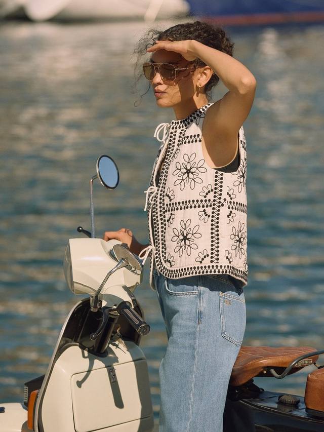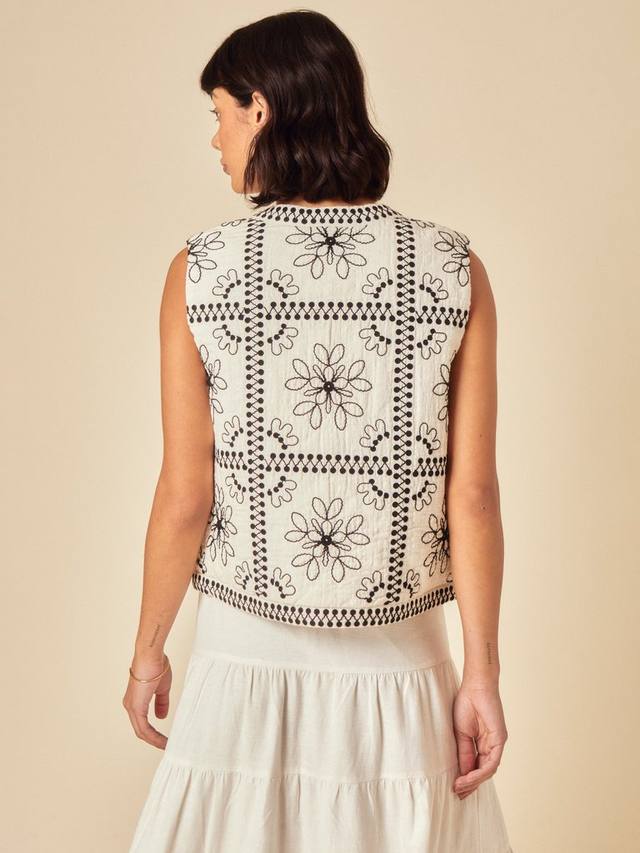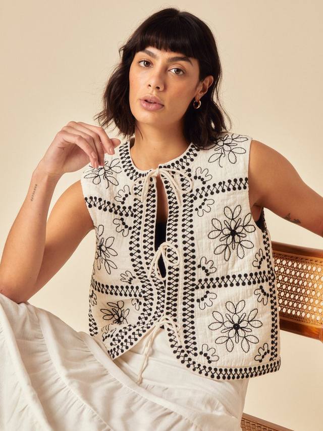 Наденьте жилет Layla. Этот жилет легко сочетается с другими нарядами. Нам очень нравится вышивка и завязки. Носите его с любым нарядом.