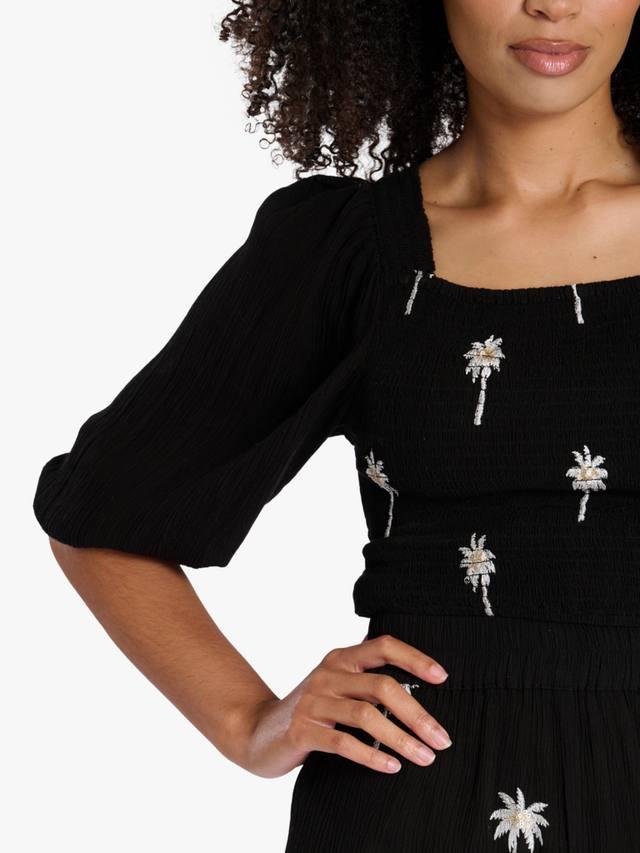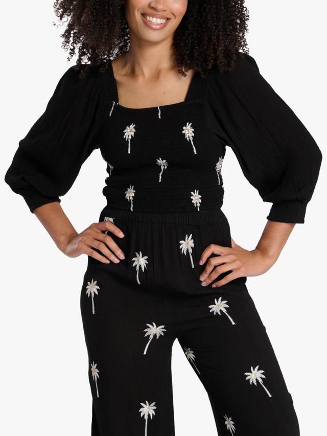 Топ с длинными рукавами и вышитым изображением пальмы привнесет в ваш гардероб прибрежное очарование. Изготовленный из мягкой, дышащей ткани, этот топ украшен изысканной вышивкой в виде пальмы, которая добавляет игривости и элегантности. Длинные рукава и свободный крой обеспечивают комфорт и универсальность, делая его идеальным для повседневных прогулок или создания многослойного образа.