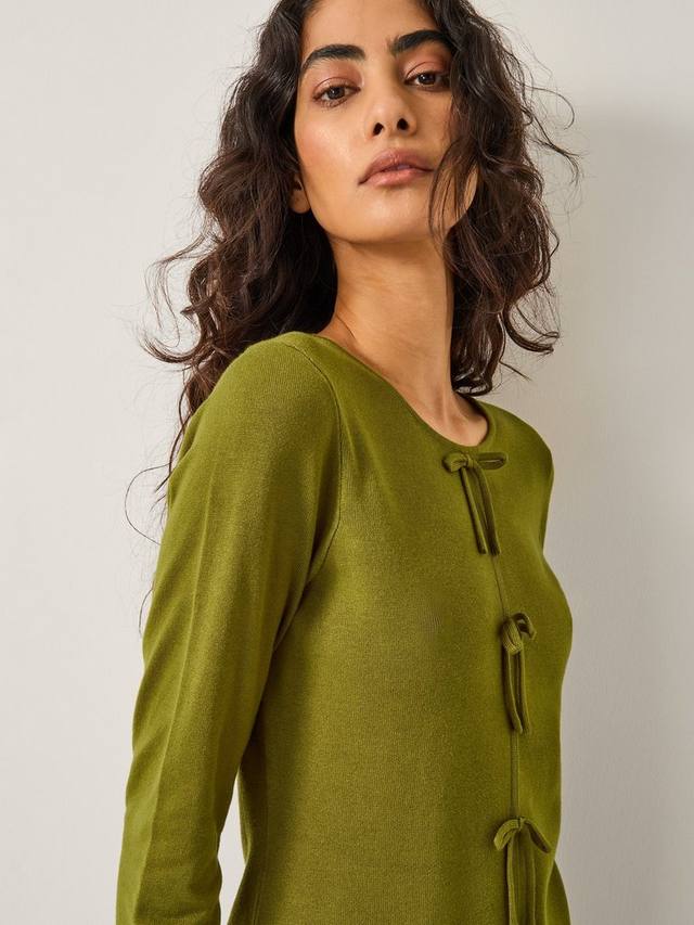 Это платье от Monsoon украшено тремя бантами спереди и мини-подолом, который развевается и колышется при каждом шаге.