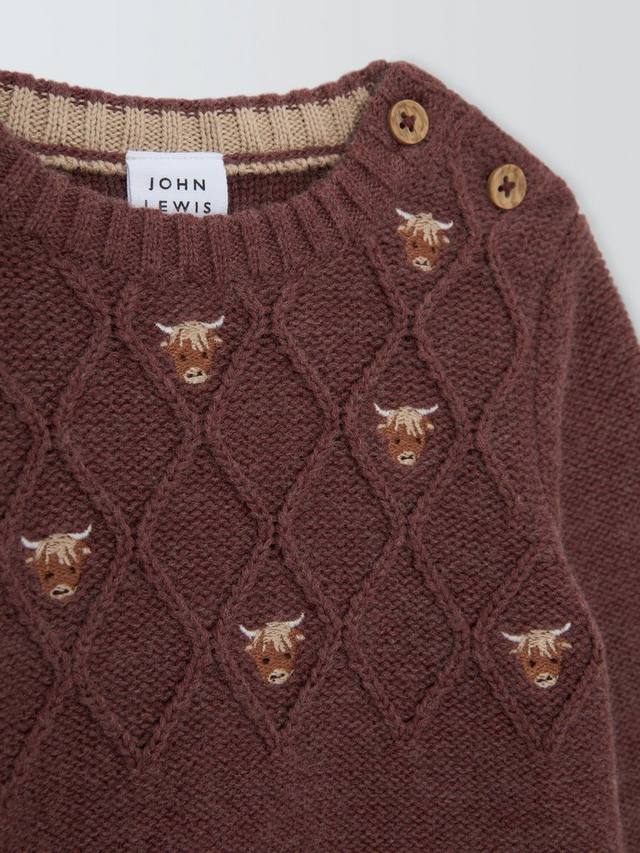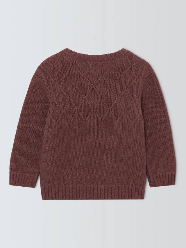 Уютный вязаный джемпер из смеси хлопка, нейлона и шерсти, обеспечивающий мягкость, износостойкость и тепло. Пуговицы под дерево на плечах облегчают надевание.