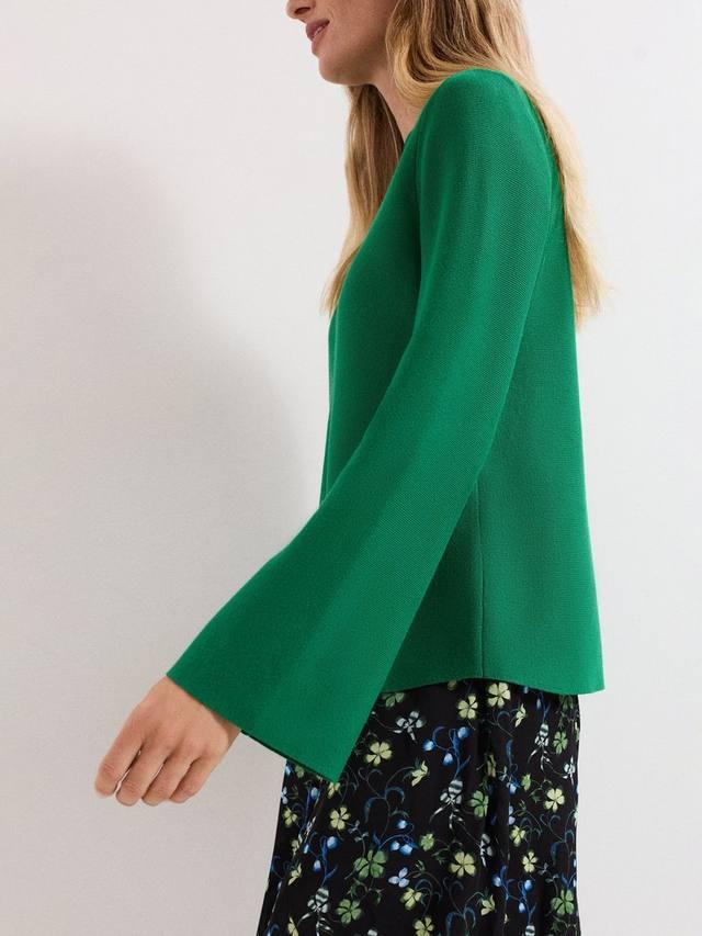 Этот мягкий вязаный вручную джемпер отличается изящным воротником-стойкой и стильными рукавами с гофре. Универсальный дизайн этой модели идеально подходит для того, чтобы разнообразить свой повседневный гардероб ярким акцентом.