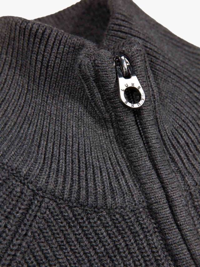 Вязаный свитер с воротником-стойкой и застежкой на четверть молнии от LUKE, выполненный из мягкого чистого хлопкового трикотажа с удобным ребристым вырезом, манжетами и подолом. Образ дополняет культовая тканая этикетка бренда LUKE EST. 1977 на левом рукаве, а также культовый язычок молнии с логотипом LUKE.