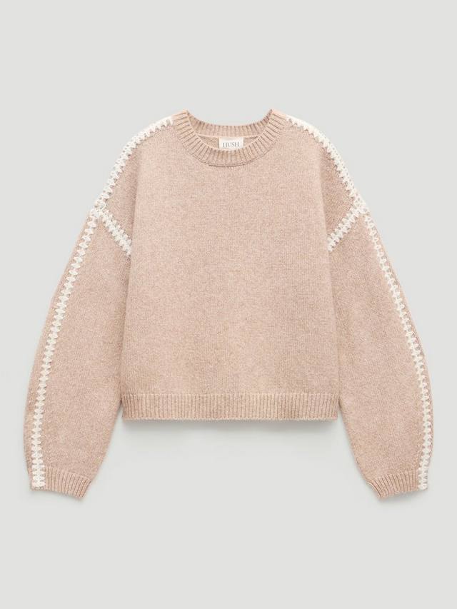 Этот свитер средней плотности от HUSH с простым круглым вырезом горловины дополнен шерстью для создания уютного образа.