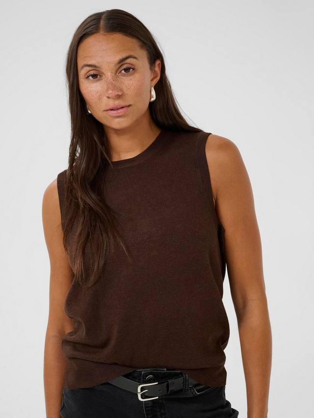 Этот джемпер без рукавов от KAFFE обеспечит вам комфорт благодаря вискозной смеси средней плотности. Круглый вырез и простой крой делают его практичным выбором: его легко носить отдельно или в сочетании с другими вещами, создавая образ, который будет подстраиваться под ваш день.