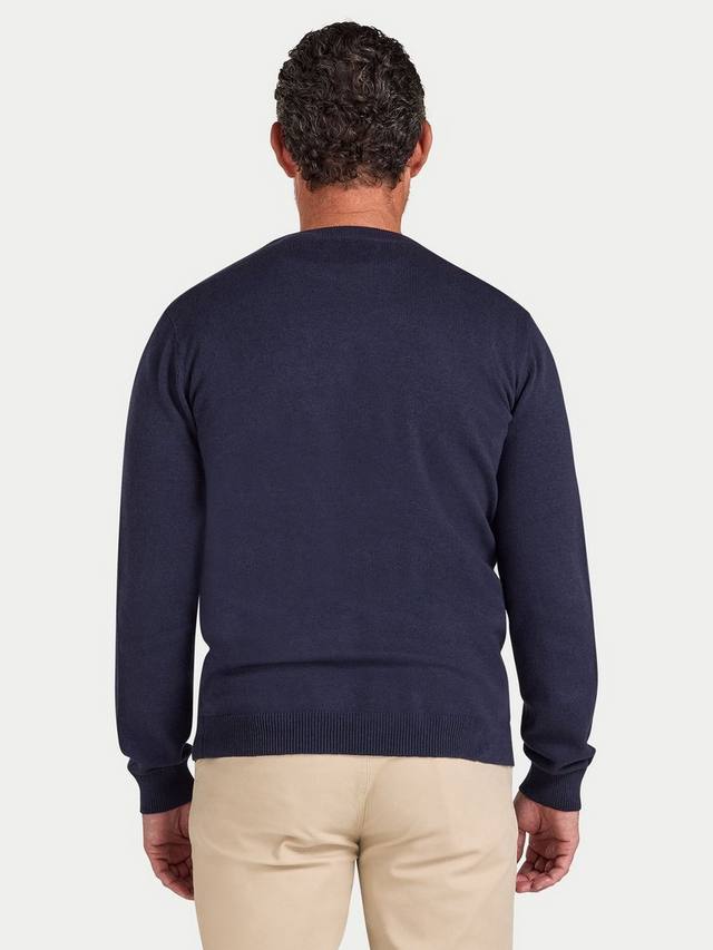 Эта мужская трикотажная кофта с круглым вырезом идеально дополнит рубашку, поло или футболку. Классический крой, изготовленная из смеси хлопка и кашемира для долговечности, мгновенно добавит стиль и комфорт вашему образу. Мягкая на ощупь, но идеально подходящая для многослойной одежды, манжеты на рукавах, контрастный вышитый логотип RB и стильный круглый вырез завершают дизайн. Идеально подходит для торжественных случаев и повседневных.