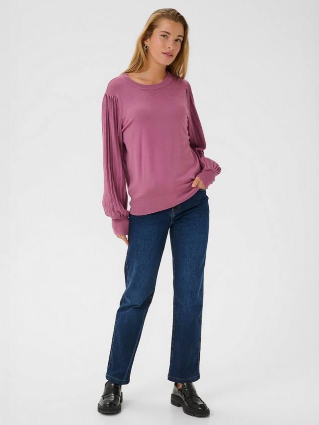 Этот тонкий плиссированный трикотажный джемпер от KAFFE с круглым вырезом и длинными объемными рукавами станет отличным выбором в прохладную погоду.
