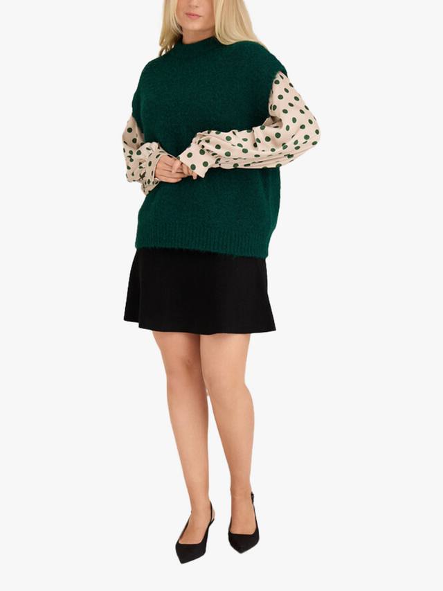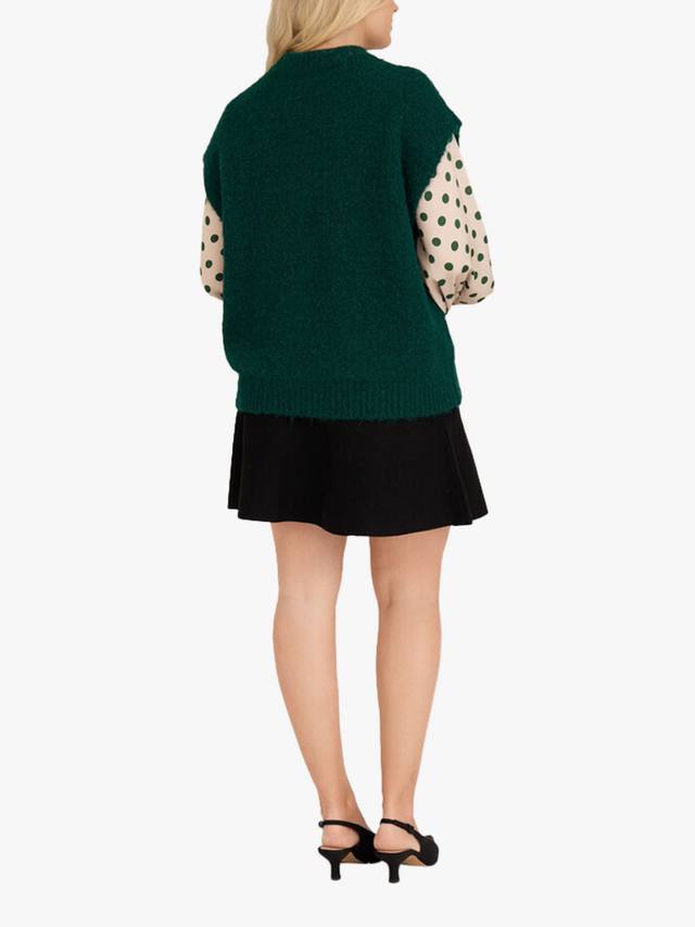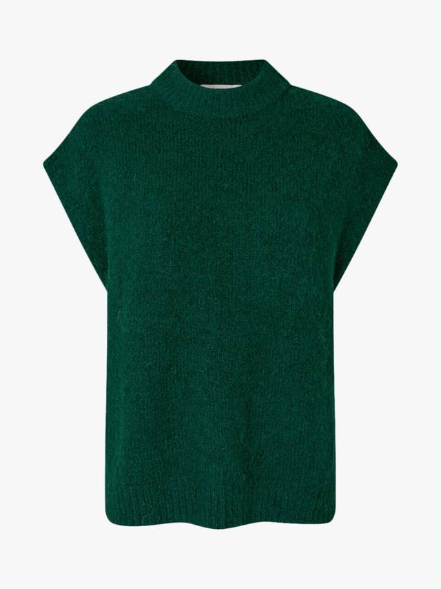 Жилет Patrisia — свободный трикотажный жилет со спущенным плечом. Жилет изготовлен из мягкого материала и имеет круглый вырез горловины с ребристыми краями. Жилет соответствует размеру.