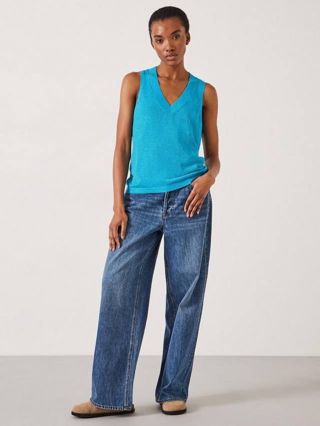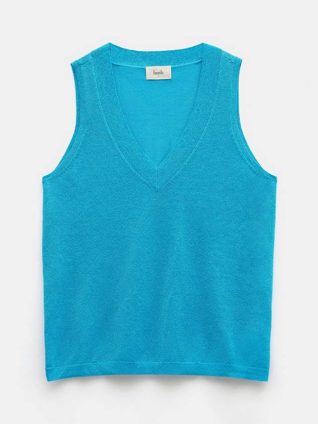 Этот вязаный жилет от HUSH, ставший неотъемлемой частью гардероба, оживлен мерцающим эффектом.