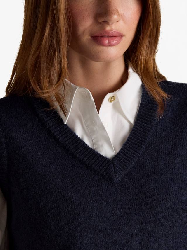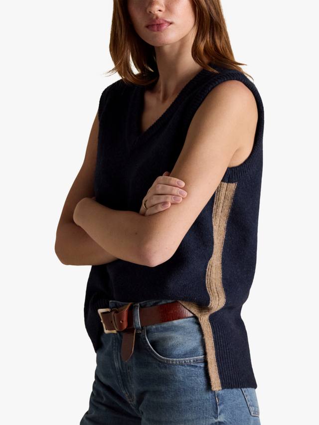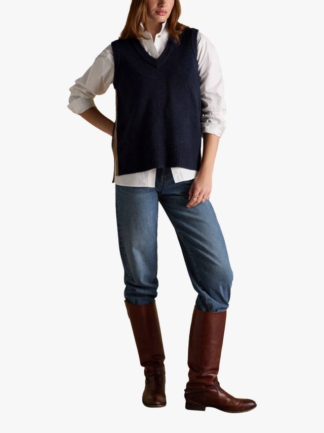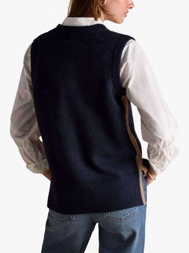 Этот вязаный жилет Holly — стильная вещь, идеально подходящая для многослойной одежды или самостоятельного ношения в тёплую погоду. Он, несомненно, украсит даже самый простой наряд благодаря классическому V-образному вырезу, боковым разрезам и ребристым краям. Просто наденьте под него рубашку, и ваш образ в стиле преппи будет готов.