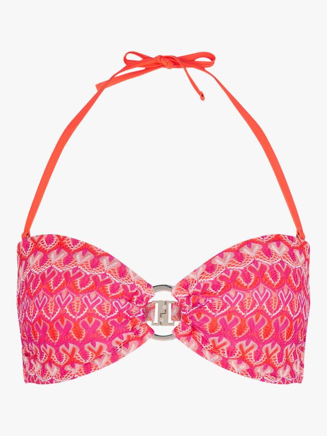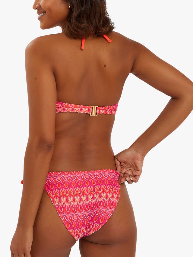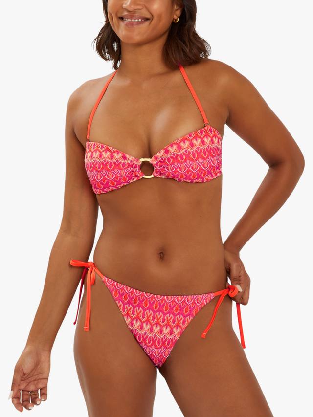 Этот бикини-топ, напоенный теплыми закатными тонами, идеально подходит для Коста-дель-Соль. Он имеет бандо с завязками на шее и серебристым уплотнительным кольцом по центру.