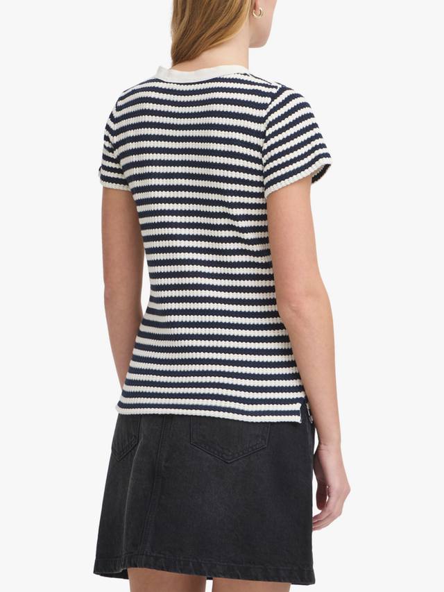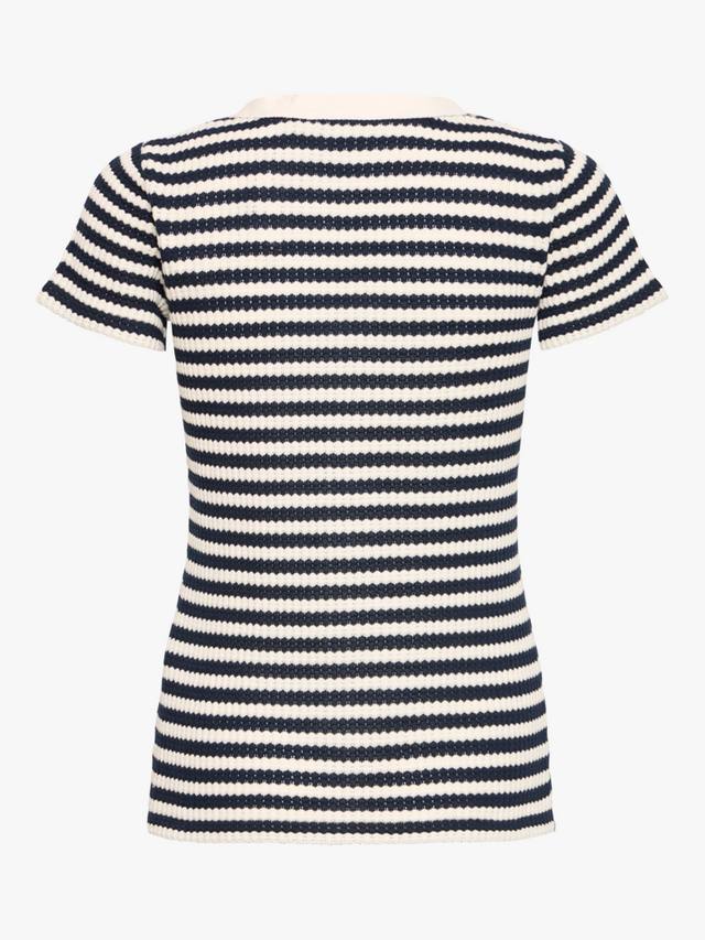 Этот легкий полосатый джемпер от ICHI с V-образным вырезом и короткими рукавами, выполненный из мягкой ткани с добавлением хлопка, идеально подходит для ношения в многослойной одежде.
