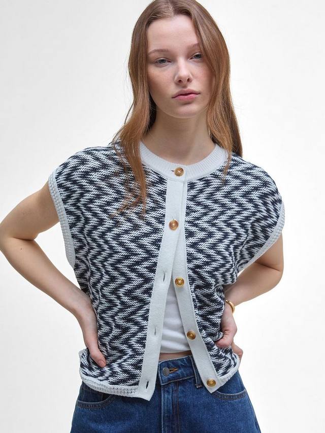 Свитер-жилет из 100% хлопка — незаменимая вещь в любом гардеробе для холодной погоды, и жилет Barbour Olivia Sweater на пуговицах — не исключение. Этот объемный зигзагообразный шов создает ощущение максимального уюта в самые холодные дни. Этот уютный жилет идеально подходит для создания многослойной одежды в прохладные дни и станет отличным выбором.