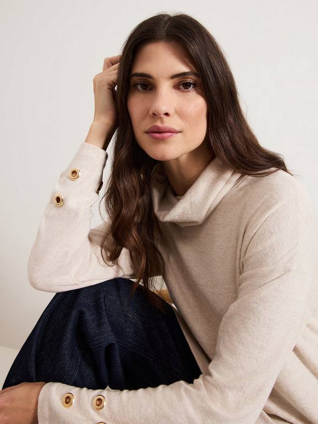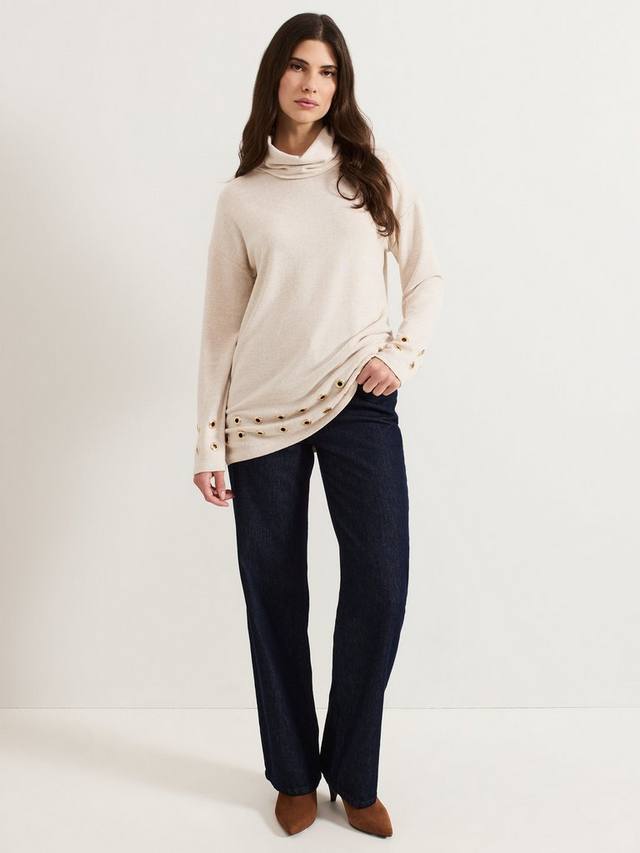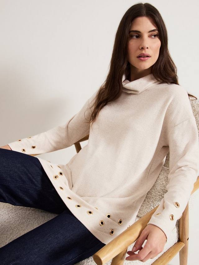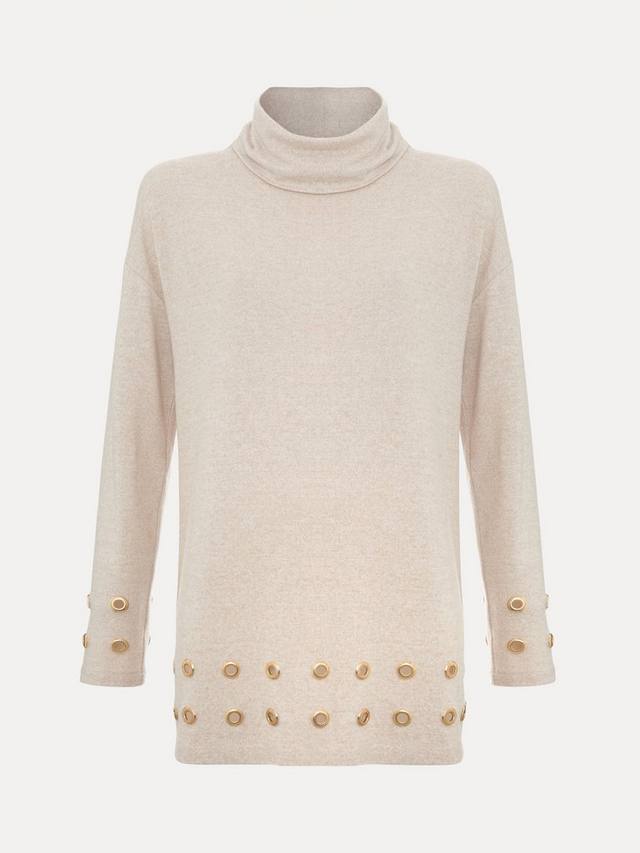 Обновите свой базовый гардероб этим удлиненным трикотажным топом. Топ Jennie, выполненный в мягком оттенке, дополнен уютным водолазкой и люверсами, которые придают ему современный вид. Для создания непринужденного образа сочетайте его с джинсами и любимыми ботильонами на каблуке.