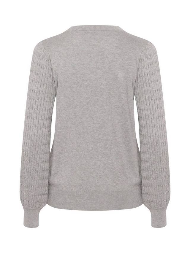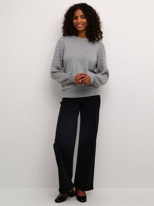 Пуловер Nanna — это простой трикотажный топ, который отлично сочетается с чем угодно. У него круглый вырез горловины, классический крой и вырез на бедрах. Рукава длинные и свободные, связаны узорчатой вязкой и собраны в широкие трикотажные манжеты.