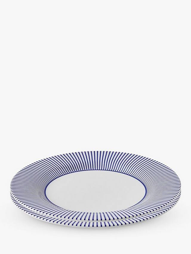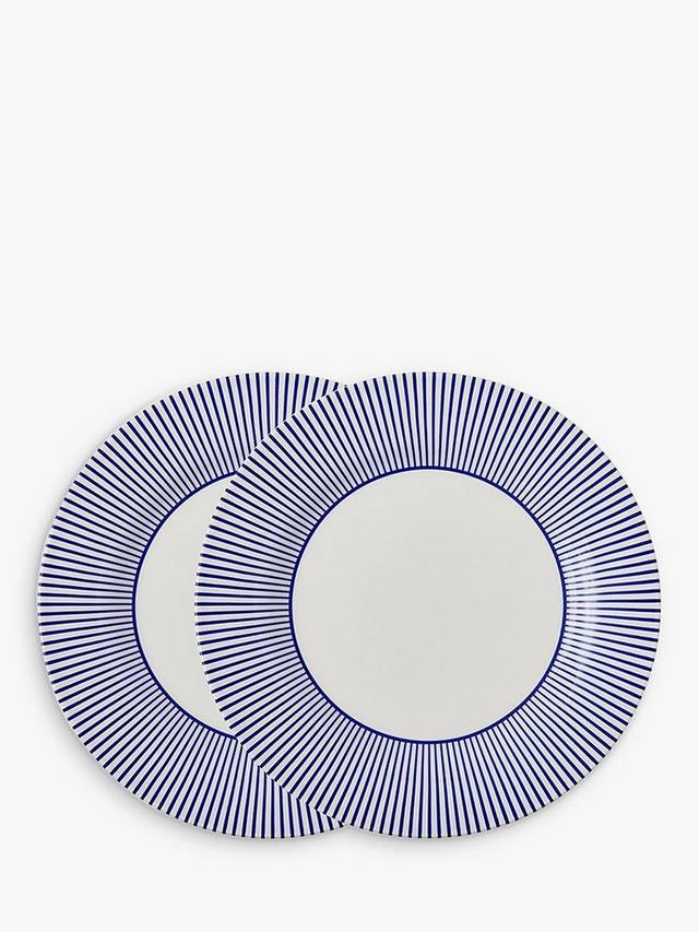 Эта пара обеденных тарелок Steccato, тщательно изготовленная из фаянса, отличается узкими полосками на безупречно белом фоне. Можно мыть в посудомоечной машине и микроволновой печи для ежедневного использования.