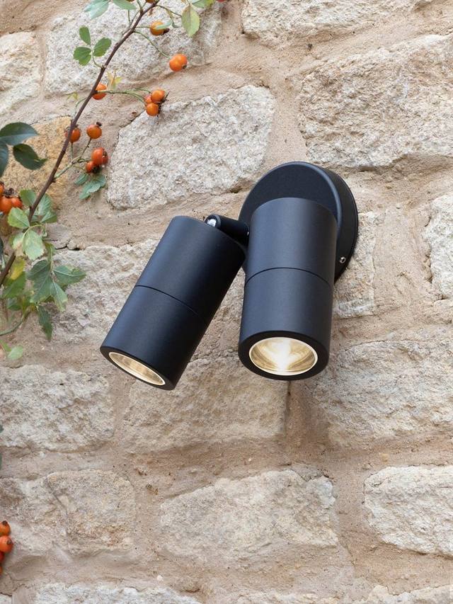 Этот двойной уличный настенный светильник оснащен двумя сменными светодиодными лампами. Он изготовлен из цельного алюминиевого цилиндра и оснащен регулируемыми плафонами, что позволяет направлять свет именно туда, куда нужно. Степень защиты IP65 гарантирует устойчивость к влаге и пыли на открытом воздухе.
