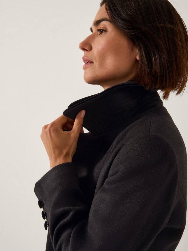 Внимание: может вызвать серьёзную зависть к пальто. Это пальто, вдохновлённое винтажным стилем для женщины XXI века, станет отличным выбором для прохладной погоды. Изготовлено из мягкой фактурной ткани и дополнено бархатным воротником, сочетающимся с двубортными пуговицами и клапанами карманов.