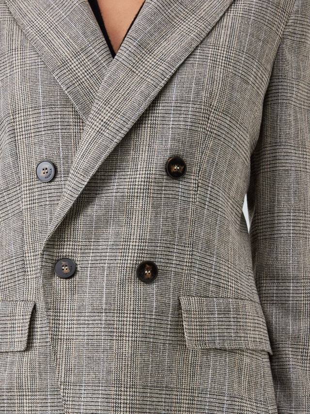 Он имеет аккуратный воротник и текстурированную отделку в клетку и изготовлен из гладкой смесовой ткани для легкости.