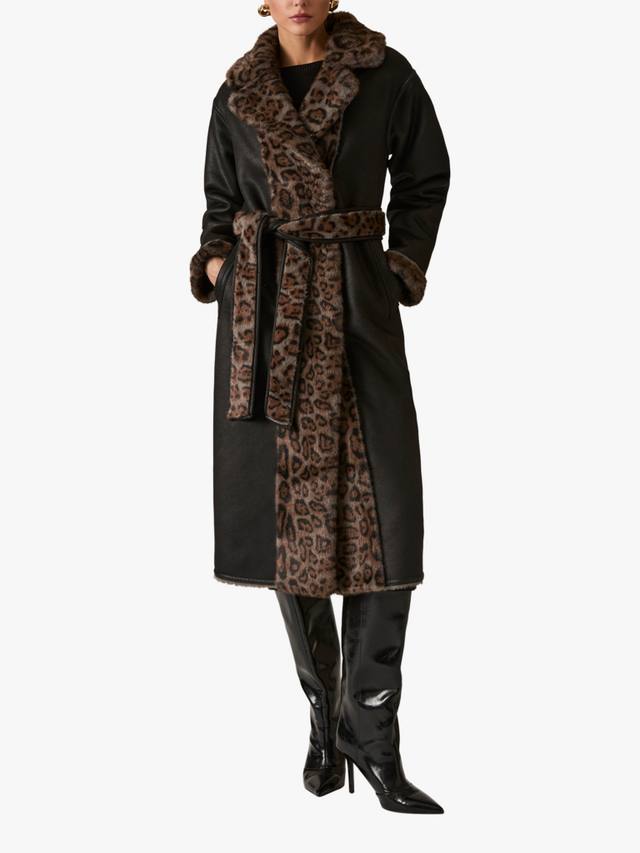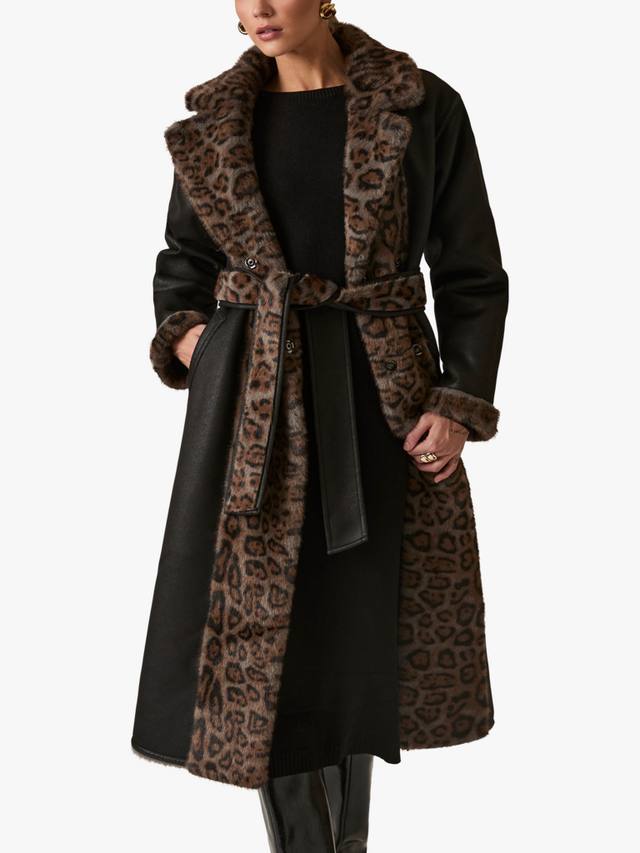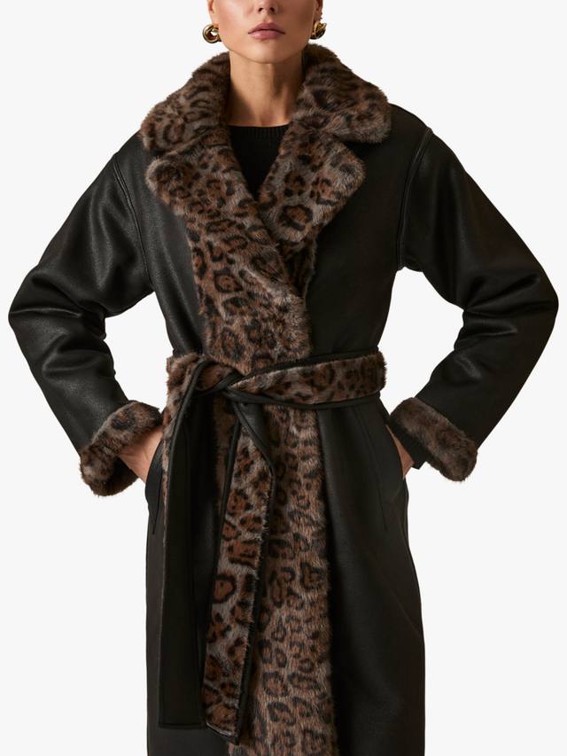 Двусторонняя шуба из искусственного меха с леопардовым принтом от James Lakeland выполнена из искусственной кожи и дополнена яркой подкладкой из искусственного меха с леопардовым принтом на воротнике, передней части и манжетах. Благодаря боковым карманам и двустороннему крою, она сочетает в себе два разных образа в одном эффектном изделии.