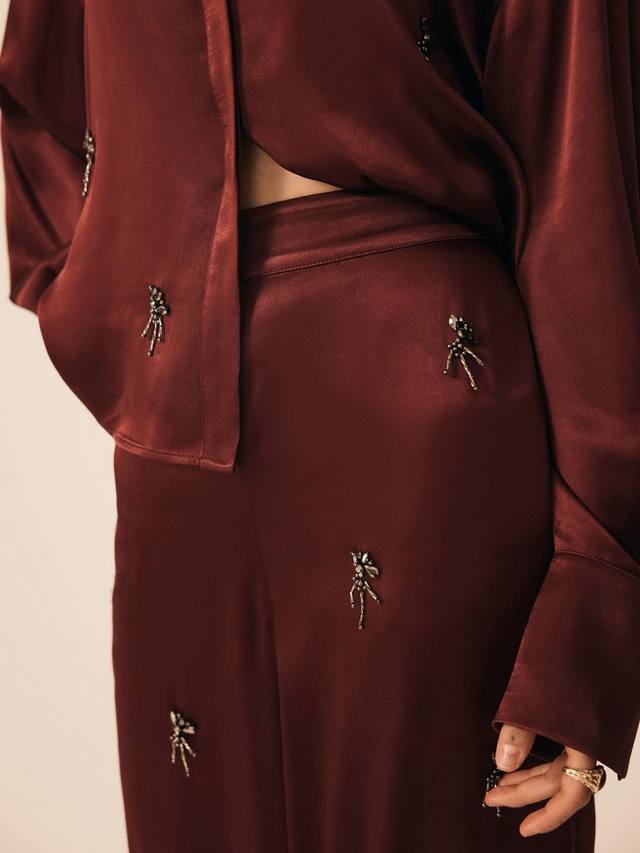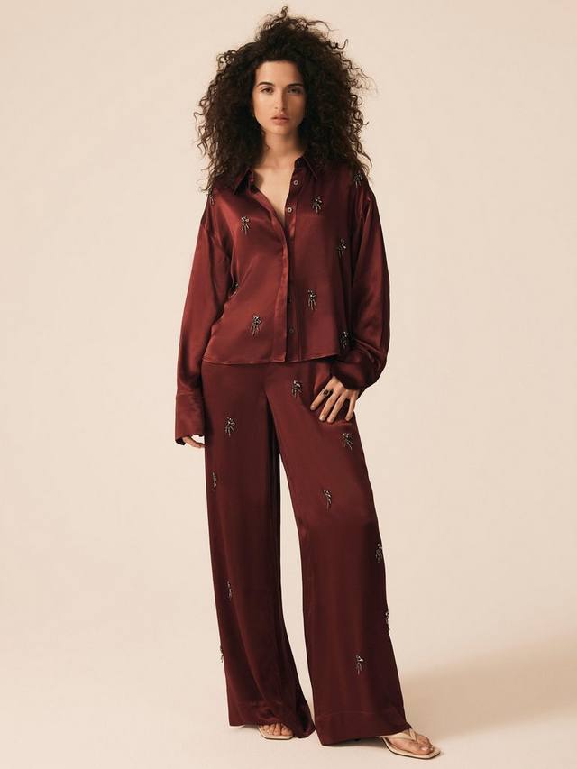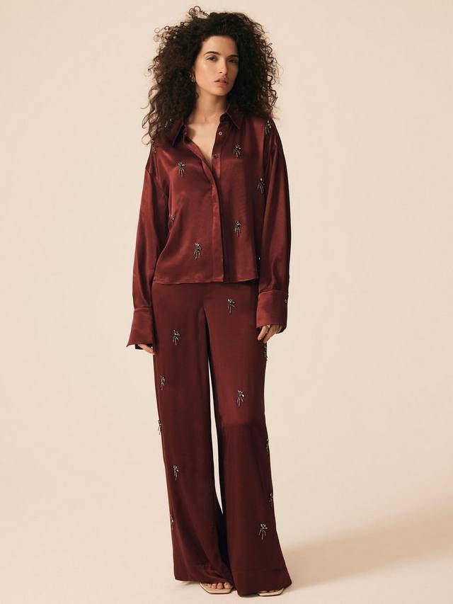 Бордовые брюки-шаровары с отделкой из бархата Mint.