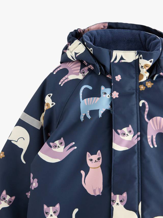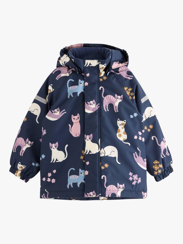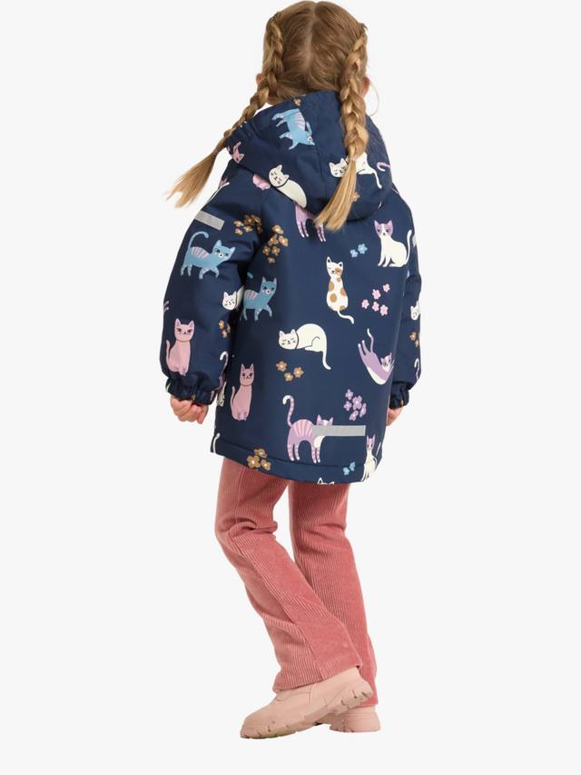 Сохните и сохраните их в тепле и сухости в этой стильной водонепроницаемой и ветрозащитной утепленной куртке, идеально подходящей для любых приключений на свежем воздухе. С рисунком в виде кошек по всей поверхности.