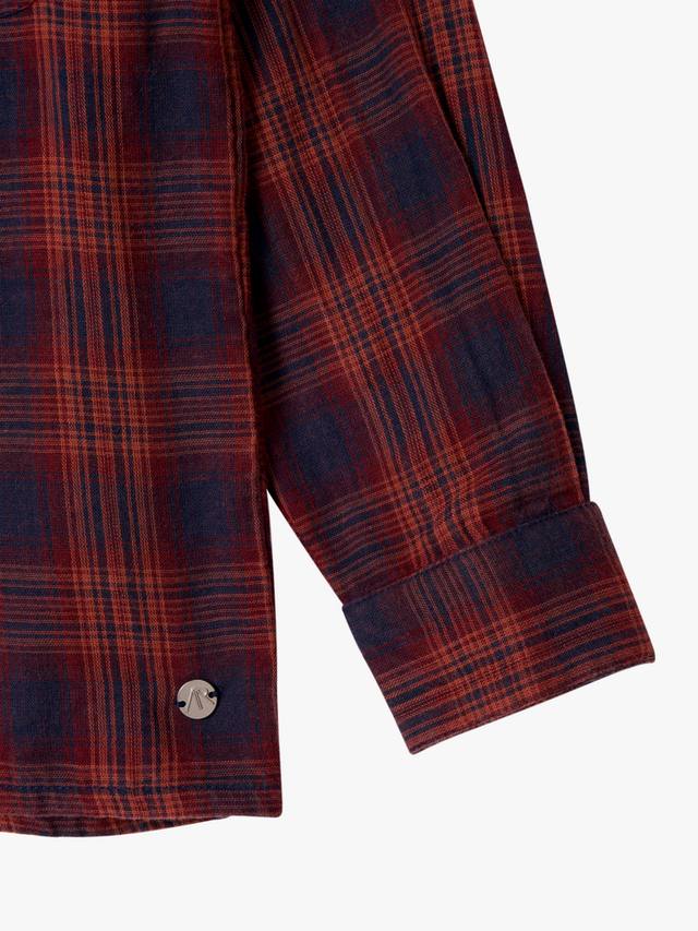 У этой рубашки есть секрет: она двусторонняя, что делает её вдвойне стильнее. Изготовленная из мягкой, струящейся ткани, которая повторяет движения, она украшена яркой клеткой снаружи и скрытой клеткой сзади для дополнительного стиля. Непринуждённая, удобная и очаровательная.