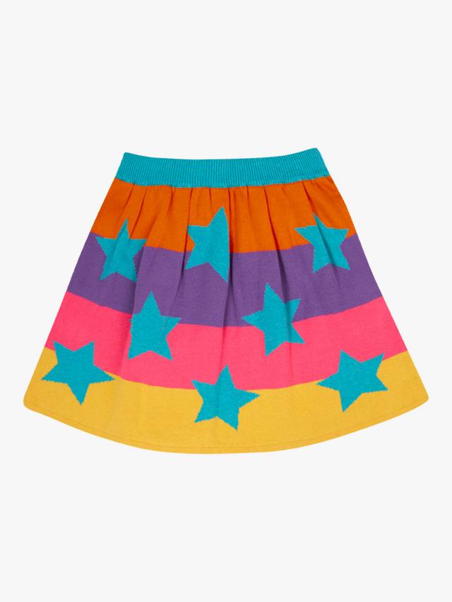 Мягкая юбка-солнце из органического хлопка с двусторонним дизайном и ярким рисунком в виде звёзд и полосок. Обеспечивает комфорт на весь день благодаря эластичному поясу.