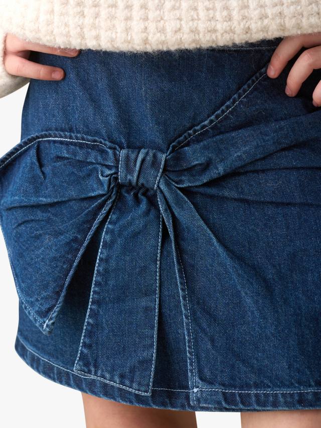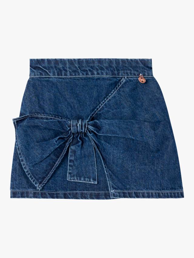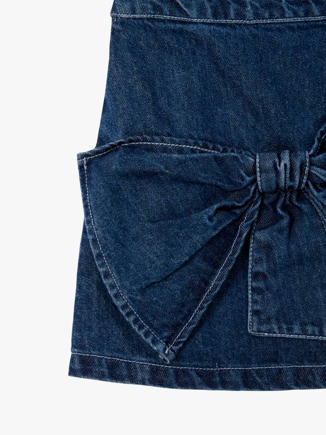 Эта юбка из темного денима, идеально сочетающая игривость и шик, привносит игривый штрих в классику. Эффектный бант спереди добавляет ей очарования и идеально подходит для любых мероприятий, от выходных до вечеринок.