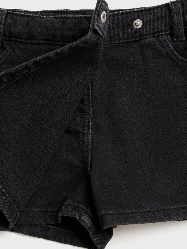 Эта юбка-шорты от Mango, выполненная из 100% хлопкового денима с запахом спереди, сочетает в себе комфорт шорт и привлекательность юбки.