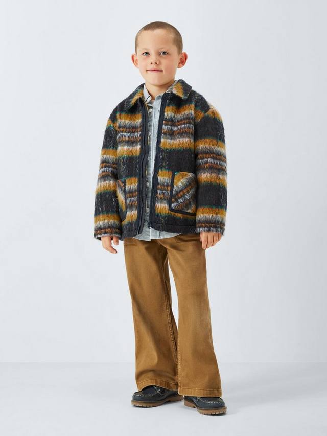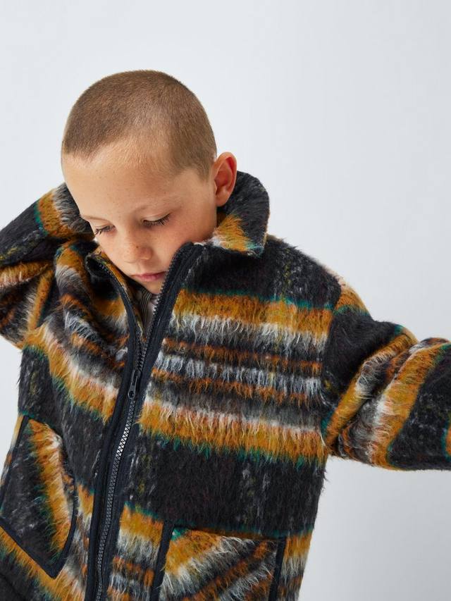 Эта клетчатая куртка из мягкой, пушистой ткани дополнена удобной молнией спереди и накладными карманами.