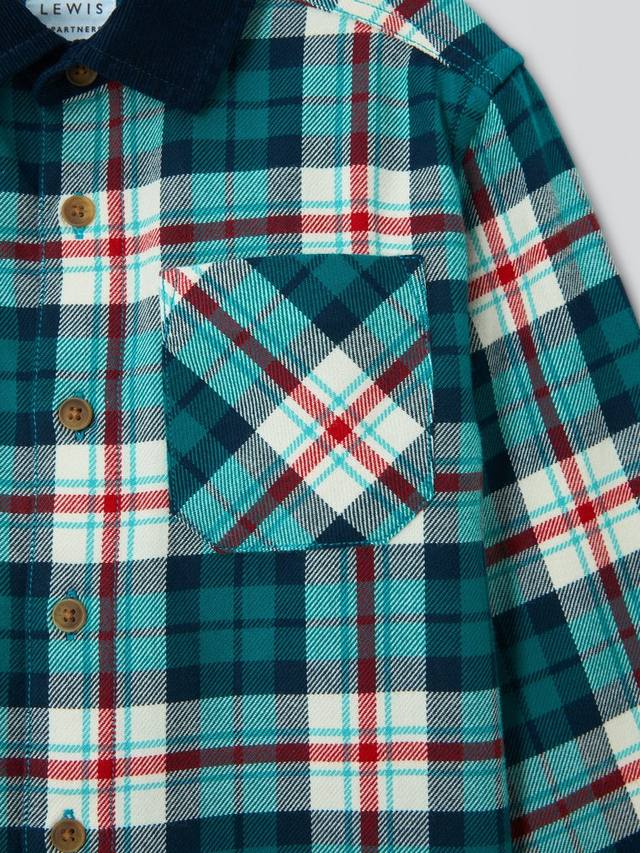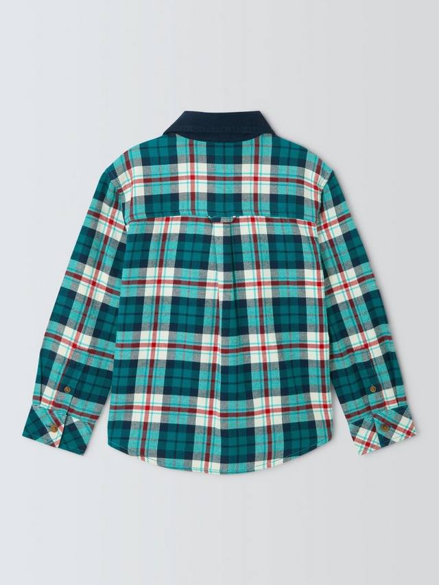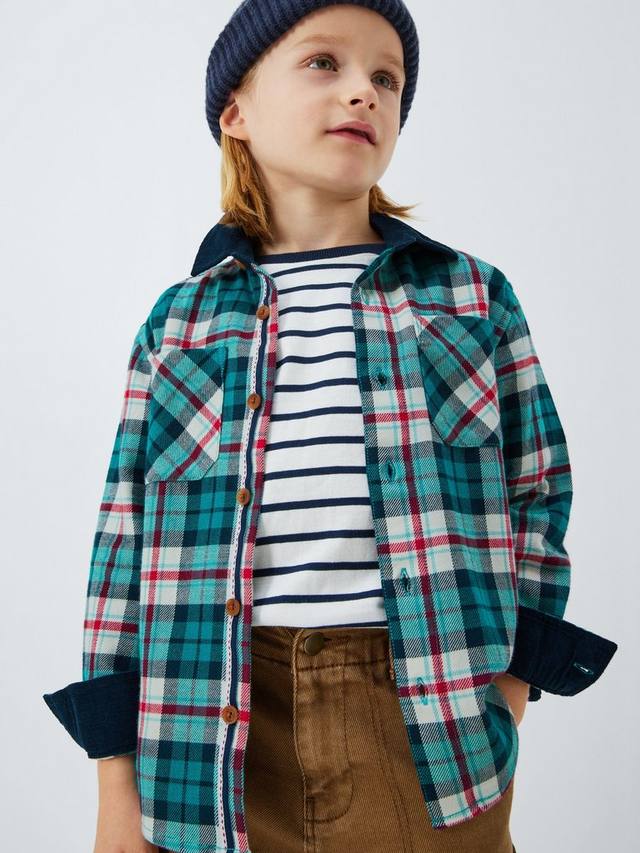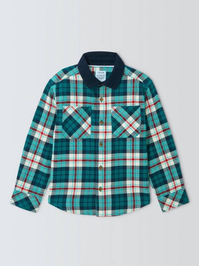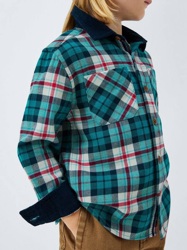 Клетчатая рубашка с длинными рукавами, контрастным воротником и накладными карманами.