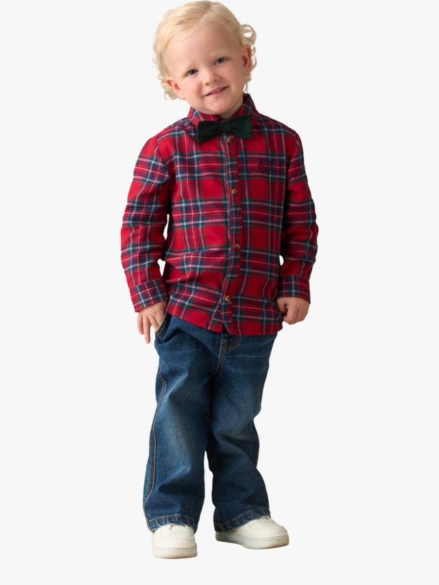 Взгляните! Эта рубашка в клетку идеально подходит для рождественской вечеринки из невероятно мягкой ткани праздничных цветов и дополняется элегантным галстуком-бабочкой. Она просто необходима в вашем гардеробе. Доступна в больших размерах.