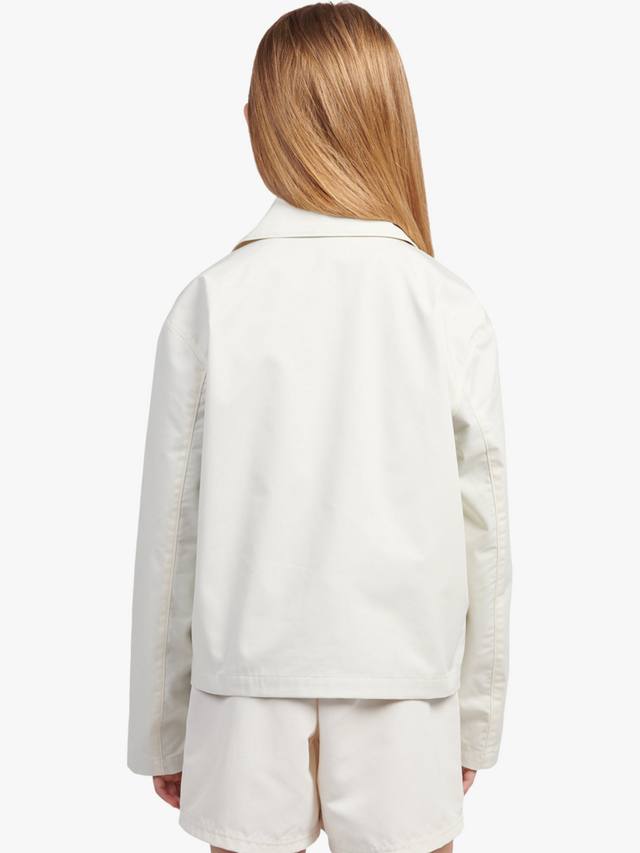 Эта куртка из смесовой хлопковой ткани с воротником и длинным рукавом изготовлена из прочной тканой ткани с отделкой логотипом.